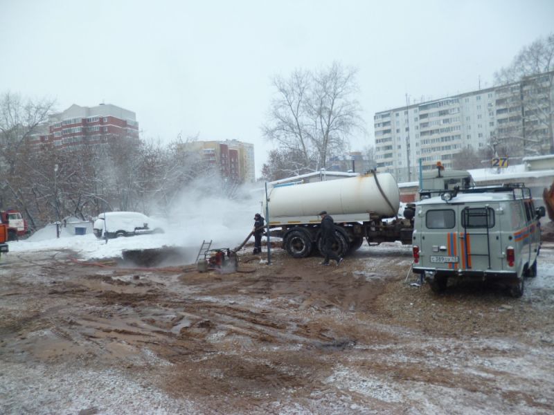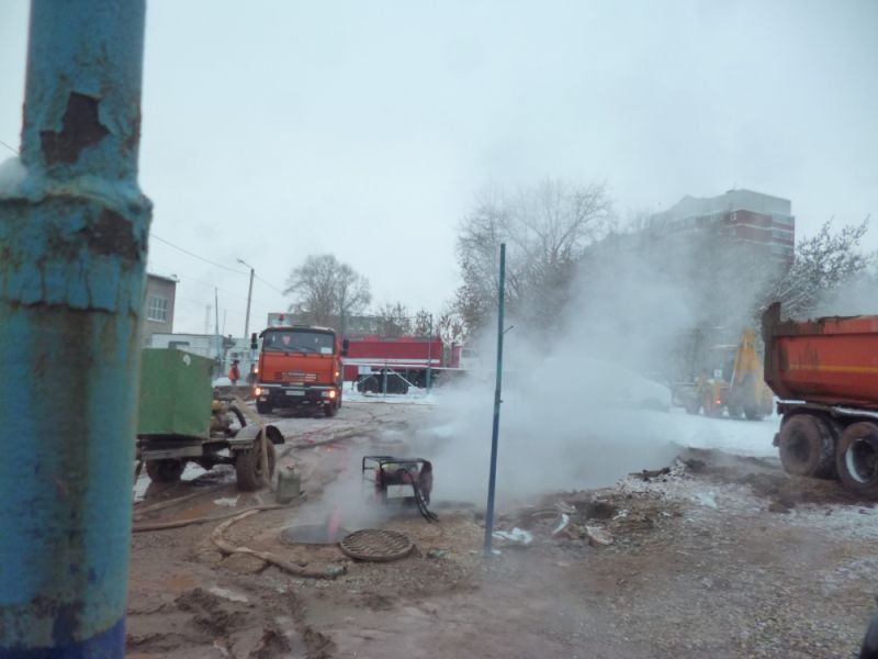 Ликвидация крупного прорыва трубы теплоснабжения на улице Комсомольской продолжается, об этом сообщает ГУ МЧС по Кировской области.