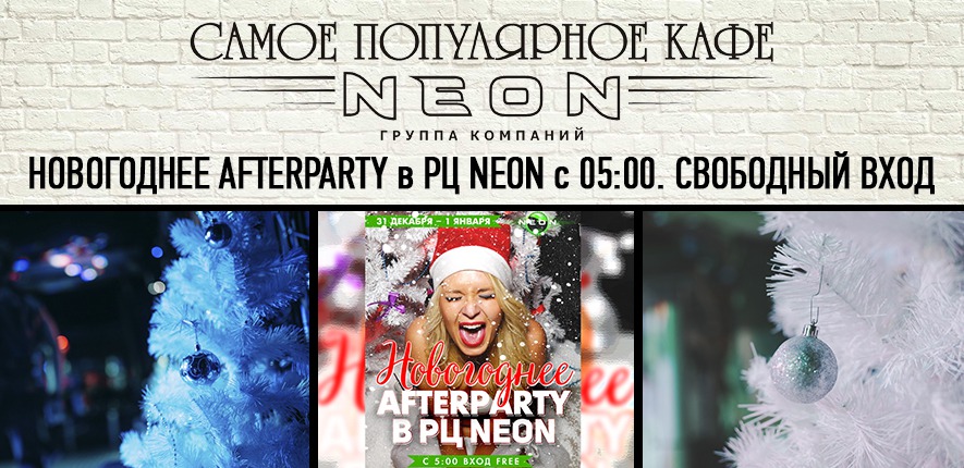 РЦ NEON берет на себя миссию растянуть чудеса и радости новогодней ночи, продлить веселье и танцы, поэтому в 05:00 открывает свои двери на Праздничное AFTERPARTY и приглашает всех жителей и гостей города продолжить свой отдых и кутить пока хватит сил и энергии! Вход для всех свободный!