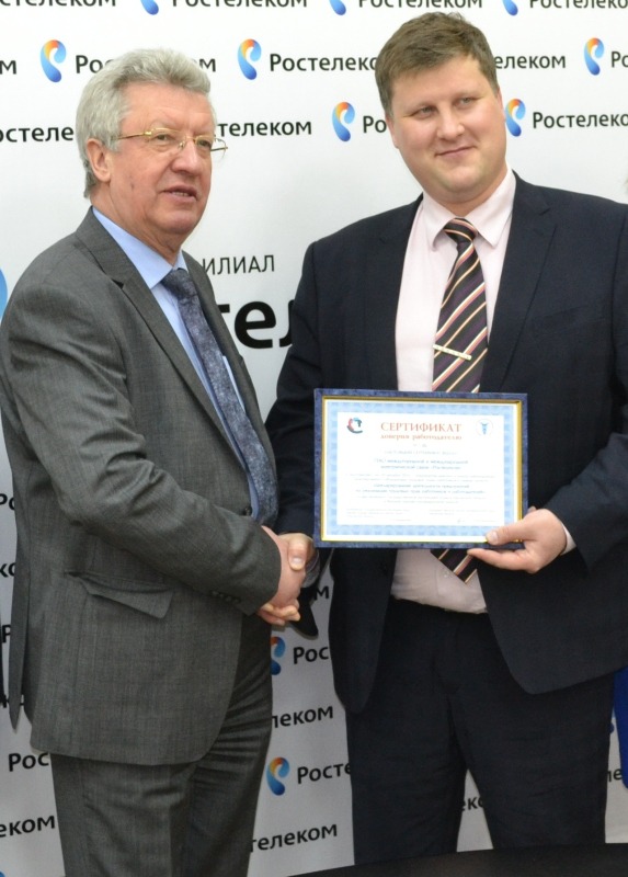 Соблюдение предприятием всех норм трудового права, подтвержденное Сертификатом, гарантирует высокую степень доверия Госинспекции труда (с уменьшением числа проверок) и формирует дополнительную привлекательность Кировского филиала ПАО «Ростелеком» как надежного, социально ориентированного работодателя.
