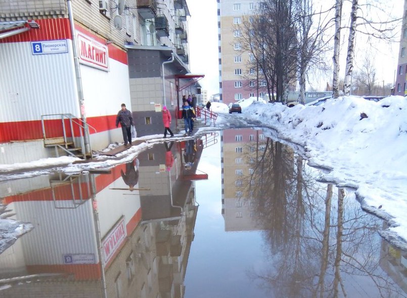 Несмотря на то, что погода в Кирове в марте установилась совсем не весенняя, в городе образовались огромные лужи, которые просто не дают возможности жителям пройти мимо них, не промочив ноги. Мы составили подборку мест, на которые обращают особое внимание прихожие и активисты.
