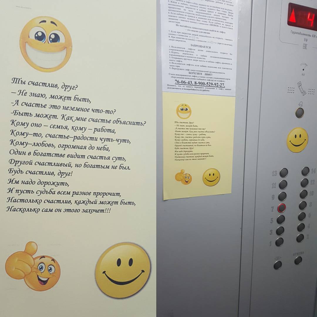 Позитив с утра. Жильцам дома из района Южный неизвестные подготовили необычный сюрприз - в лифте повесили большое стихотворение о счастье. Настроение кировчан улучшалось прямо с утра.