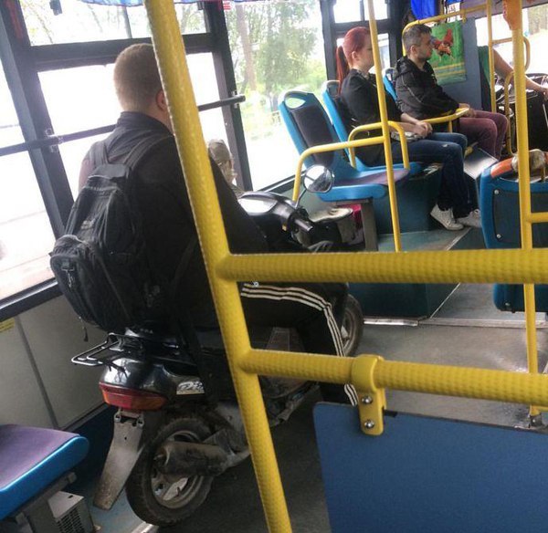 В одном из кировских автобусов парень проехал несколько остановок, сидя на скутере. Случай произошел в автобусе №70. Скорее всего, у юноши сломалось транспортное средство, которое он вез в ремонт.