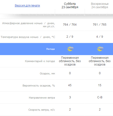 Согласно прогнозу Гидрометцентра России, 24 сентября в Кирове ожидается переменная облачность, без осадков. Температура воздуха днем +9°C, а ночью +4°C.