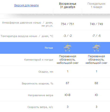 Прогноз на 31 декабря и 1 января:
