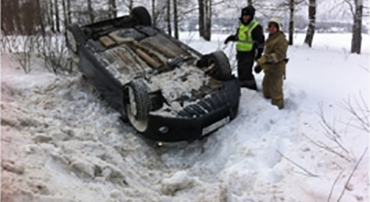 В Кировской области легковой автомобиль опрокинулся в кювет