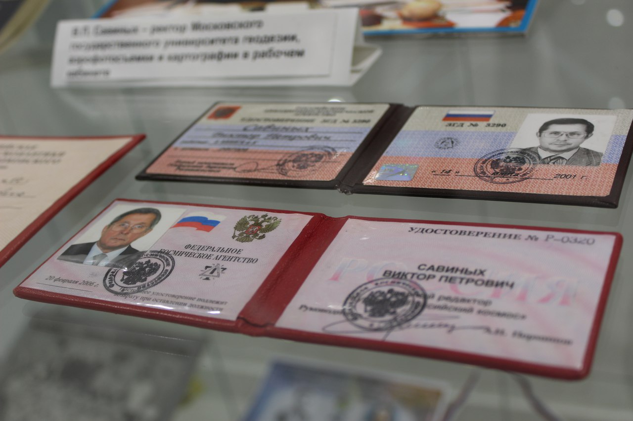 В экспозиционном зале «Вятский космонавт Виктор Савиных» можно увидеть личные вещи космонавта, в том числе настоящую космическую перчатку и удостоверение Федерального космического агентства.