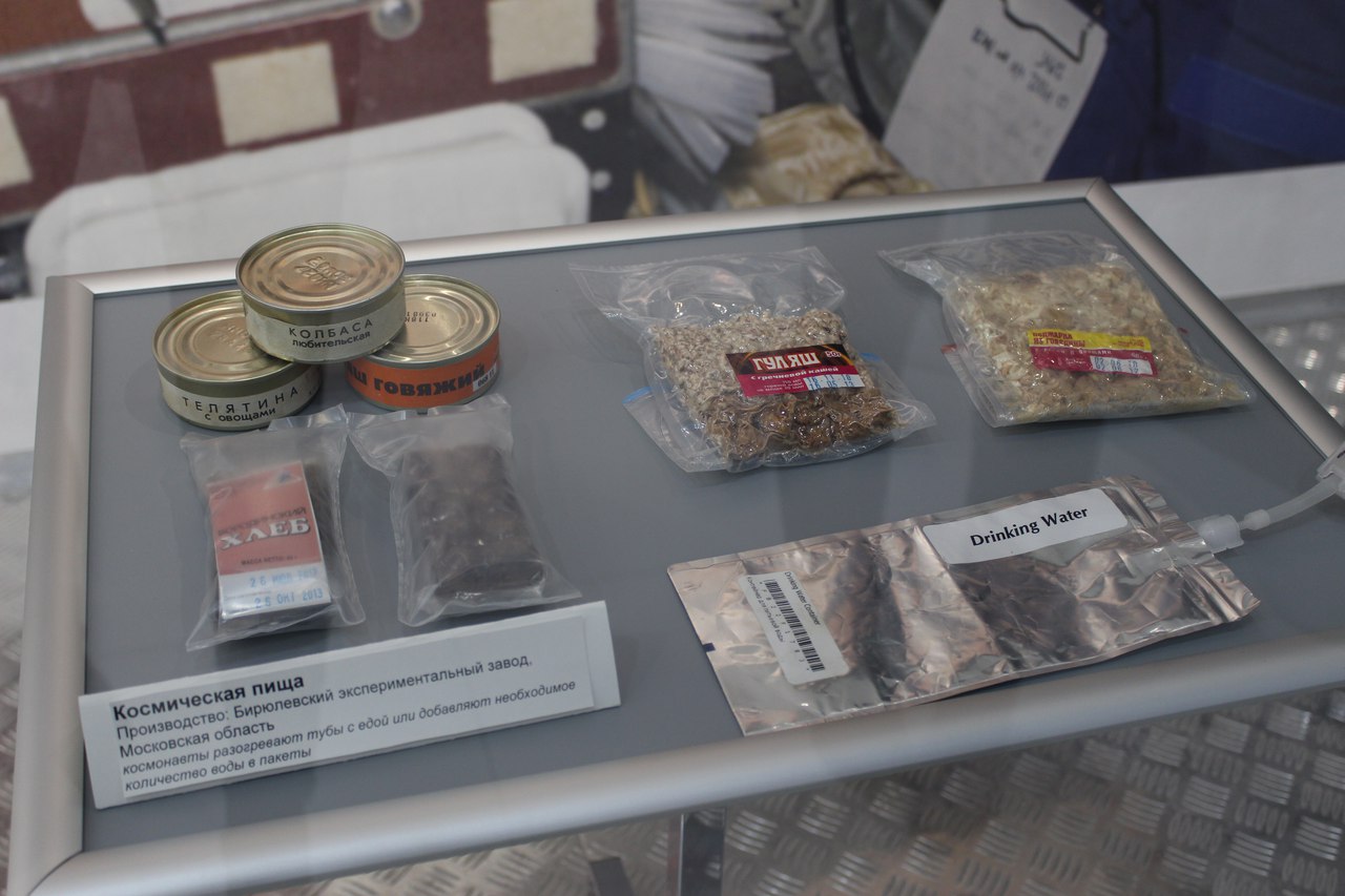 В зале «Пилотируемая космонавтика» показаны костюмы космонавтов, их пища (гуляш, хлеб, консервы), зубная паста и настоящий скафандр.