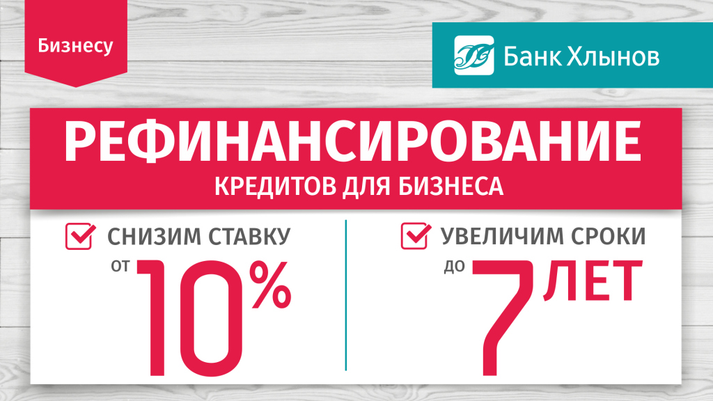 Старый кредит больше не помогает, а только тормозит ваш бизнес? Избавьтесь от лишних затрат и неудобств - переведите свои бизнес-кредиты в банк «Хлынов» на более выгодных и гибких условиях.