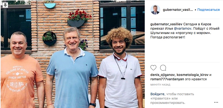 В воскресенье, 15 июля, блогер Илья Варламов прилетел в Киров. Об этом он сообщил instagram. Чуть позже губернатор Кировской области Игорь Васильев сообщил цель визита.