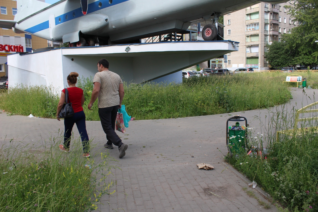 Местные жители жалуются, что траву около самолета не косят.