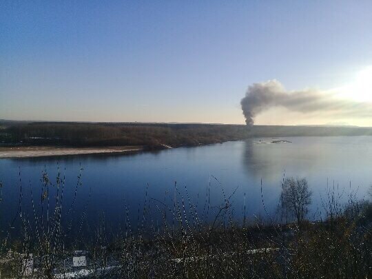 Пожар начался около 8 часов. На месте работают спасатели. Столб дыма видно издалека. В соцсетях появляются фото, сделанные кировчанами из центра Кирова.
