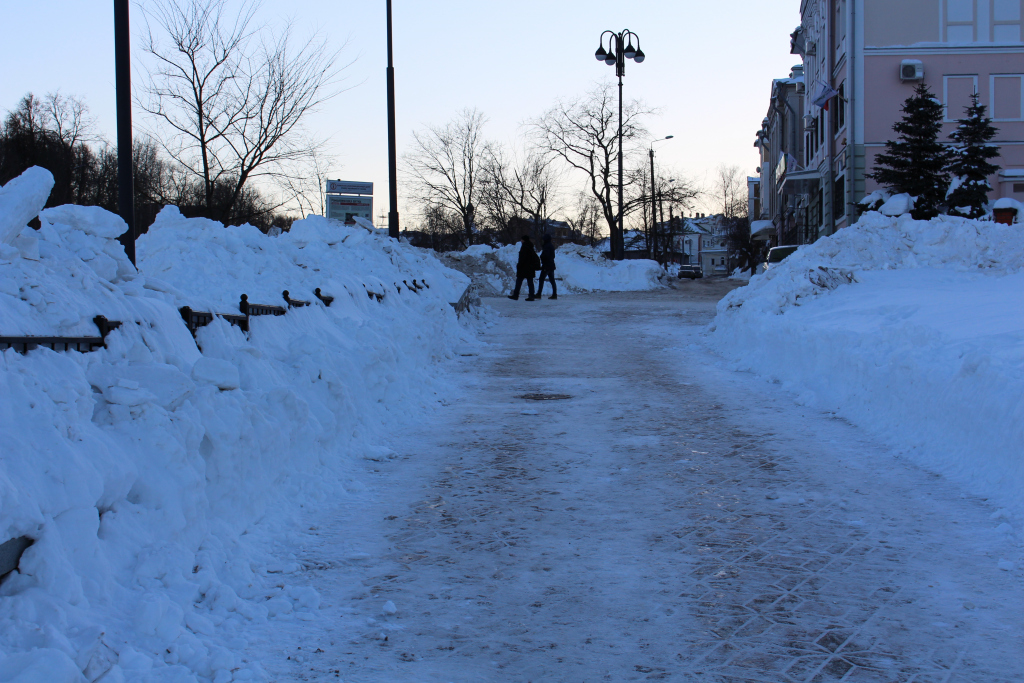 В четверг, 28 февраля, на лестницах, ведущих к нижней набережной, прокатилась девушка: она побоялась упасть на заснеженных ступеньках. В администрации сообщили, что генподрядчик обязан оперативно почистить ступеньки, чтобы спускаться можно было не сидя, а пешком.