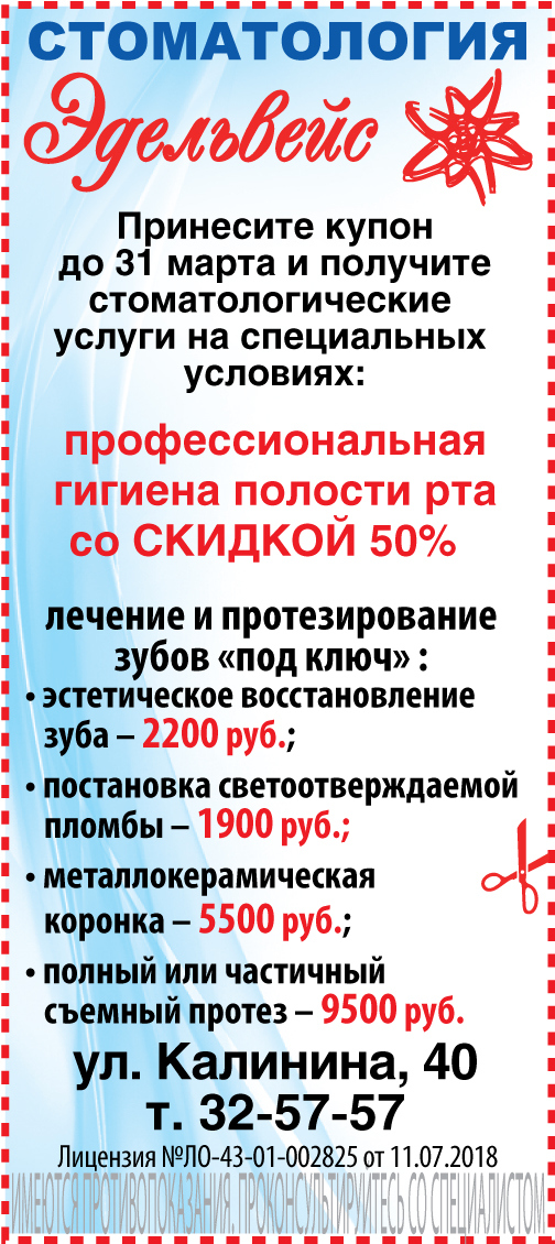 Покажите купон до 31 марта и получите стоматологические услуги на специальных условиях: