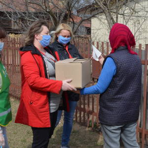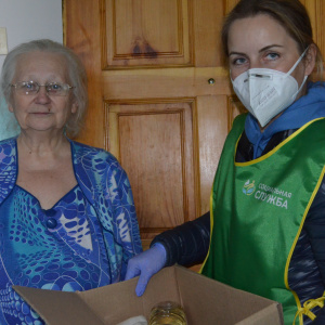 Пожилые люди должны сейчас оставаться дома, и в этот период особенно важно, чтобы они не чувствовали себя одинокими и ни в чем не нуждались. Волонтеры совместно с социальными работниками доставляют продуктовые наборы пожилым людям.