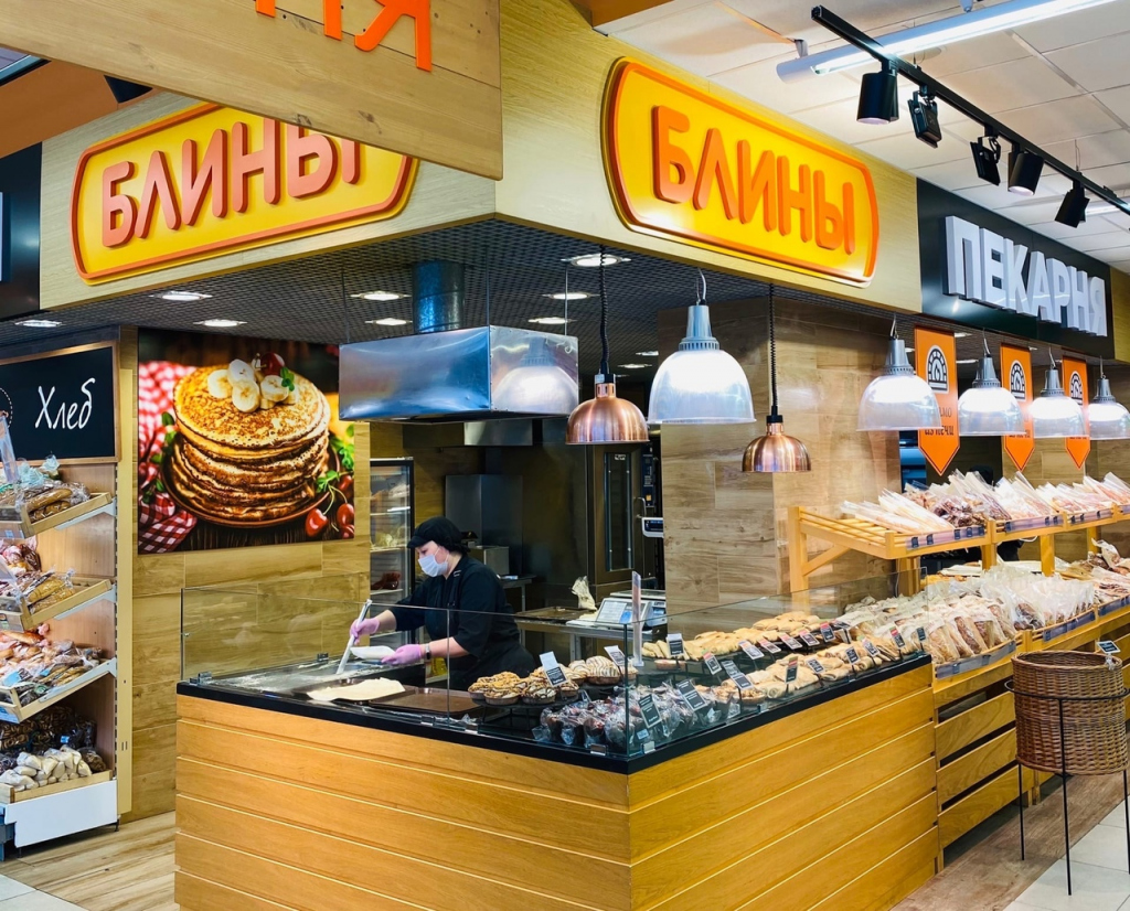 На масленицу обязательно попробуйте новинки: блинчики с лимонно-имбирной начинкой, с бананами и клубничным джемом - 339,90 руб/кг., с тыквой и изюмом, с грушей и орехами, с творогом и карамелью - 349,90 руб/кг., блинчики со сливочно-творожным кремом и малиновым вареньем или с беконом и грибами, цена - 399,90 руб/кг. А еще: блинчики «Карбонара», блины с жареной горбушей и луком, с курицей в соусе «Терияки» - все по 429,90 руб/кг.