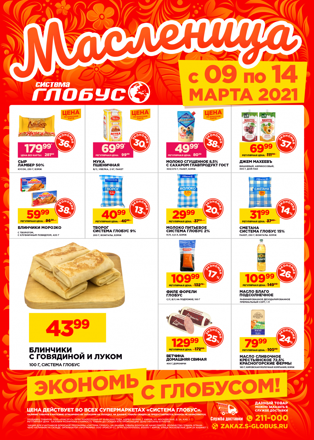 А для тех, кто любит сам печь блины, в супермаркетах «Система Глобус» на товары к Масленичной неделе действуют специальные предложения и скидки до 38%.**