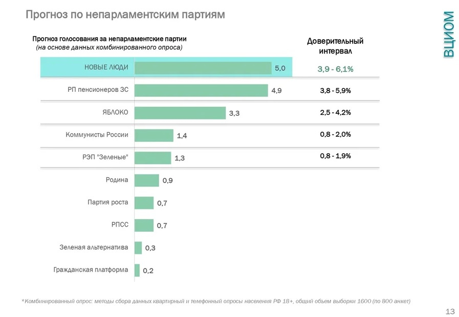 Всероссийский центр изучения общественного мнения обнародовал результаты исследования на тему «Шансы непарламентских партий на прохождение в Госдуму по итогам выборов 2021 года».