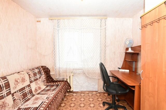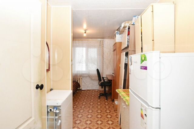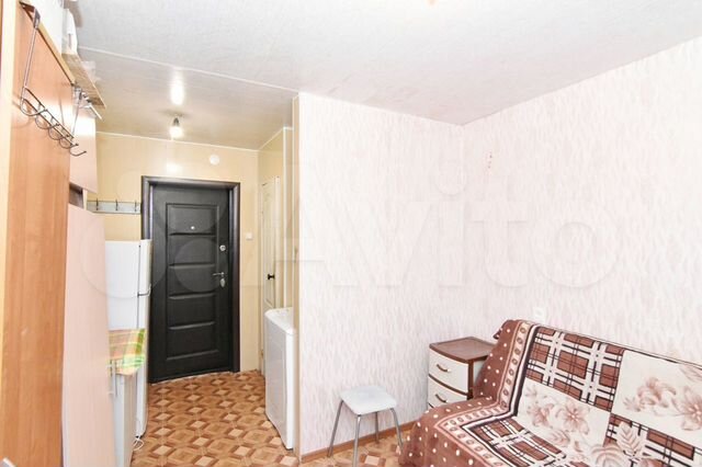 Эта квартира обходит предыдущую по площади – 19 квадратных метров, 33 684 рубля за квадратный метр. Жилье расположено на первом этаже пятиэтажного общежития. Дом 1972 года находится в глубине квартала неподалеку от Театральной площади. Продавец оставляет новым хозяевам мебель и технику: кровать, шкаф, кухню, холодильник и стиральную машину.