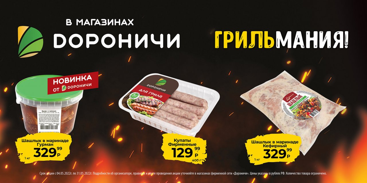 Срок акции с 04.05.2022 г. по 31.05.2022 г. Подробности об организаторе, правилах и месте проведения акции уточняйте в магазинах фирменной сети "Дороничи". Цены указаны в рублях РФ. Количество товара ограничено.