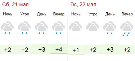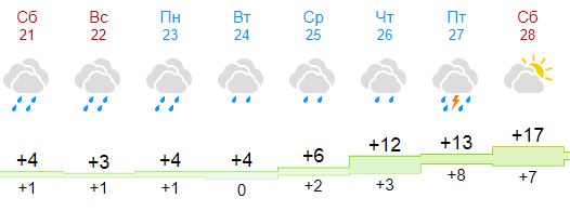 К середине следующей недели температура воздуха станет теплее. Синоптики обещают до + 17 °C. Однако начиная с 21 мая всю неделю будут дожди.
