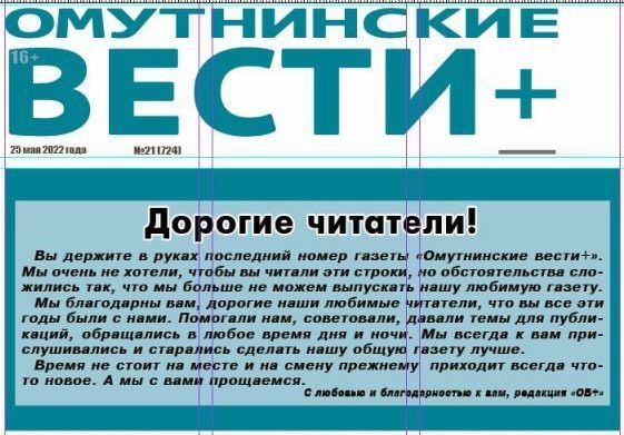 25 мая увидел свет последний номер издания "Омутнинские вести+". Редакция газеты заявила о закрытии.