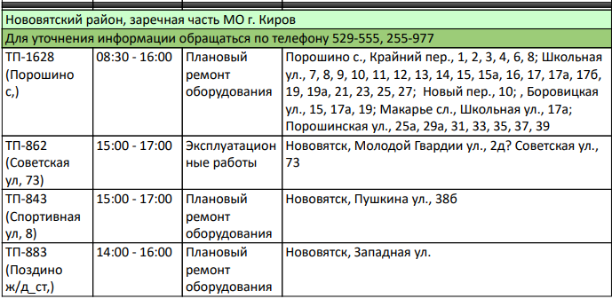 "Горэлектросеть" информирует, что в понедельник, 6 июня, в Кирове отключат электроэнергию. Это касается некоторых домов Ленинского, Октябрьского, Первомайского и Нововятского районов. На понедельник запланированы ремонтные работы на сетях.