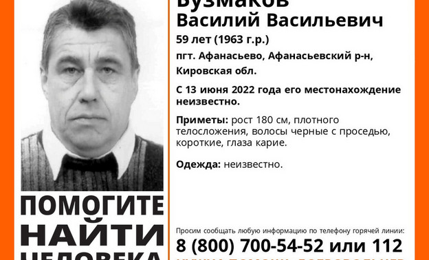 По информации "Лиза Алерт", Василий Бузмаков из Афанасьева пропал 13 июня. В тот день его видели в последний раз.