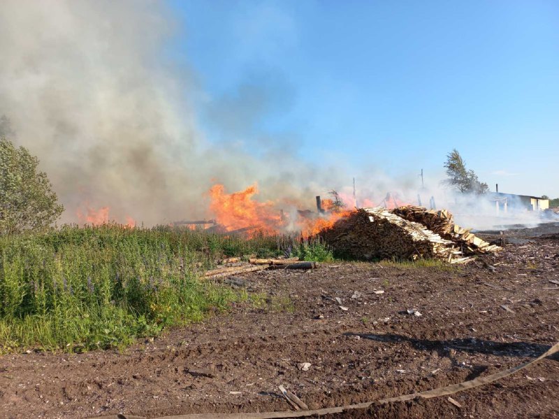 Инцидент произошел в Санчурском районе Кировской области. В среду, 6 июля, в селе Матвинур загорелась территория пилорамы. Пожар начался вечером, в 16 часов.