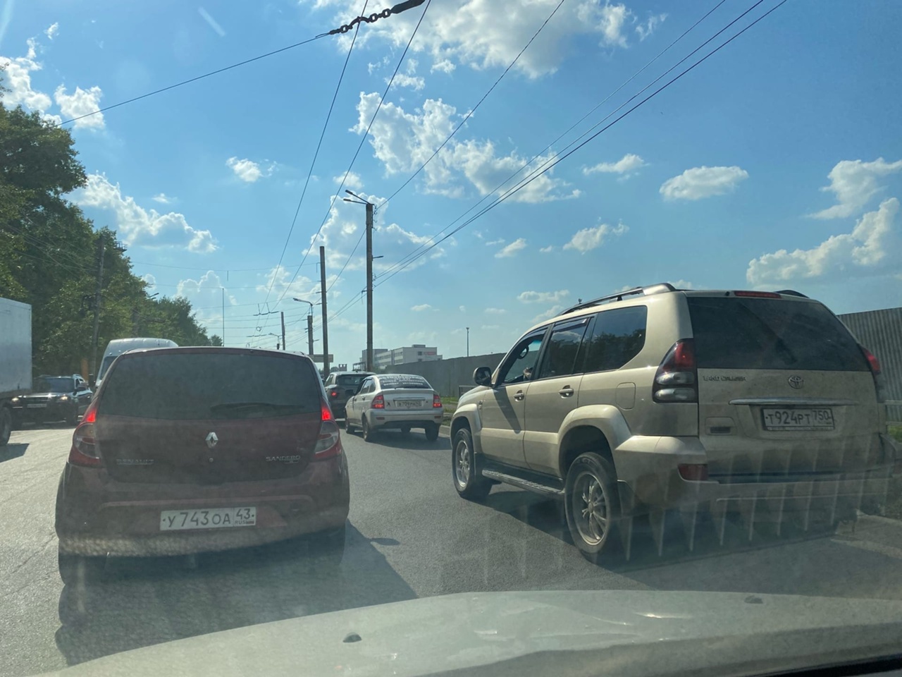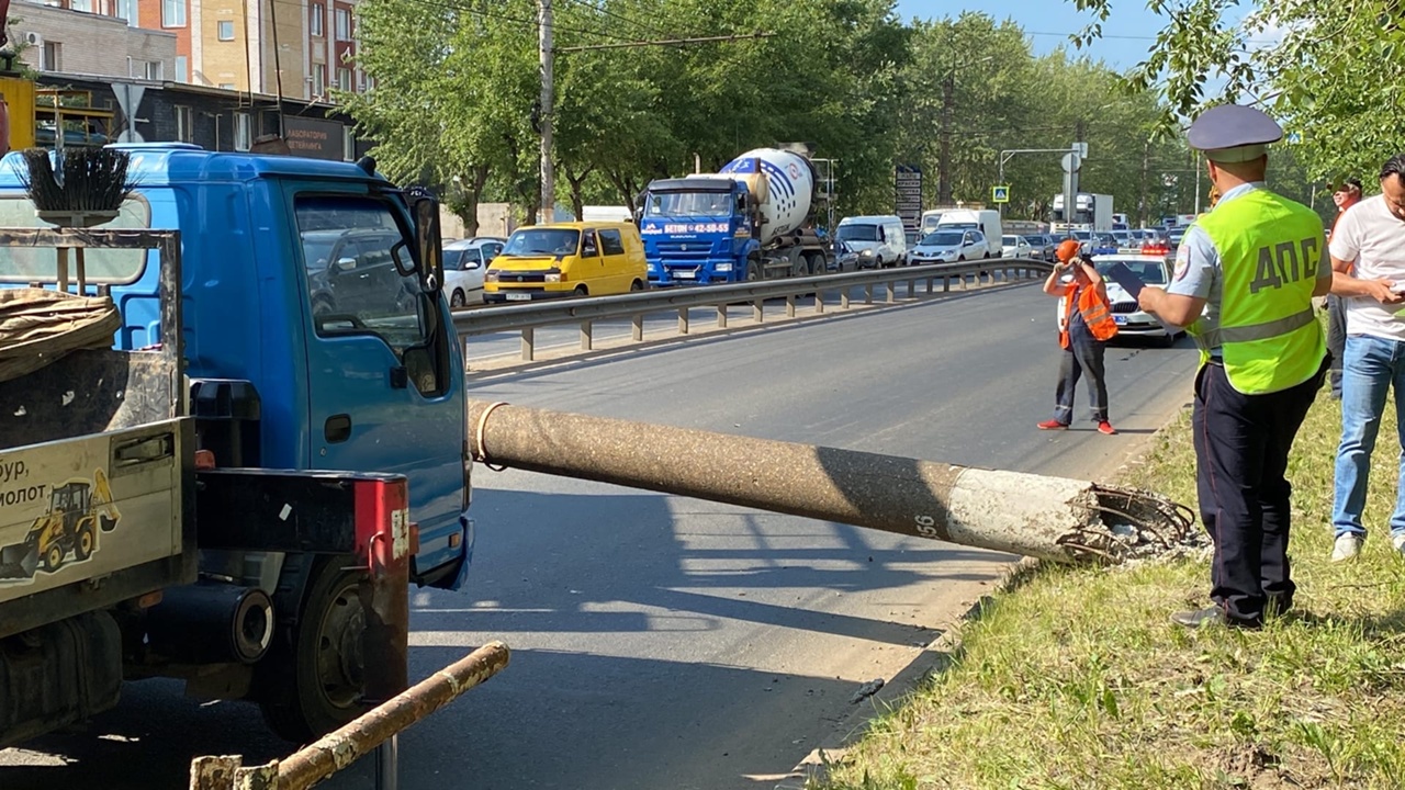В Кирове из-за рухнувшей опоры ЛЭП на улице Производственной образовалась огромная пробка