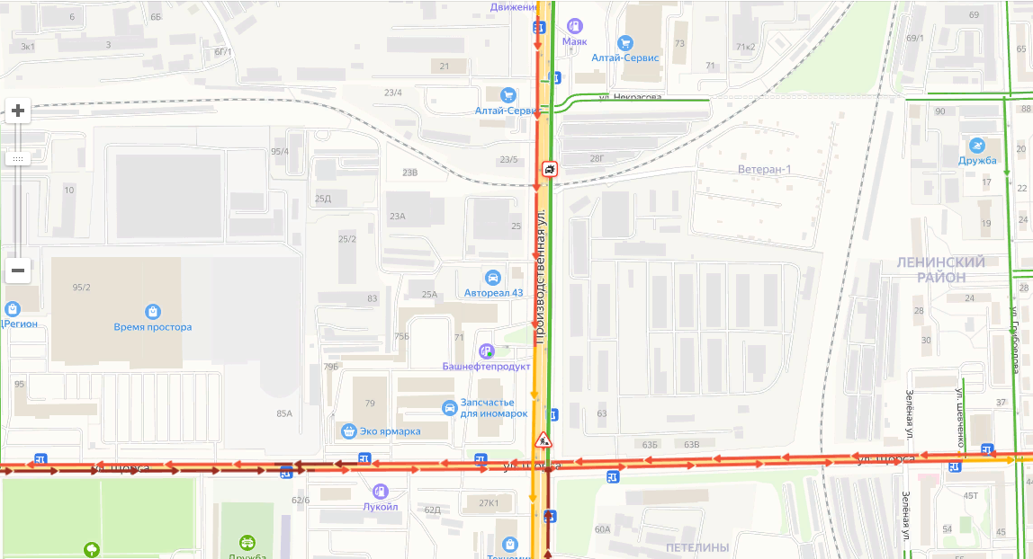По данным сайта www.probki-online.ru, на улицах Производственной и Щорса образовались огромные пробки.