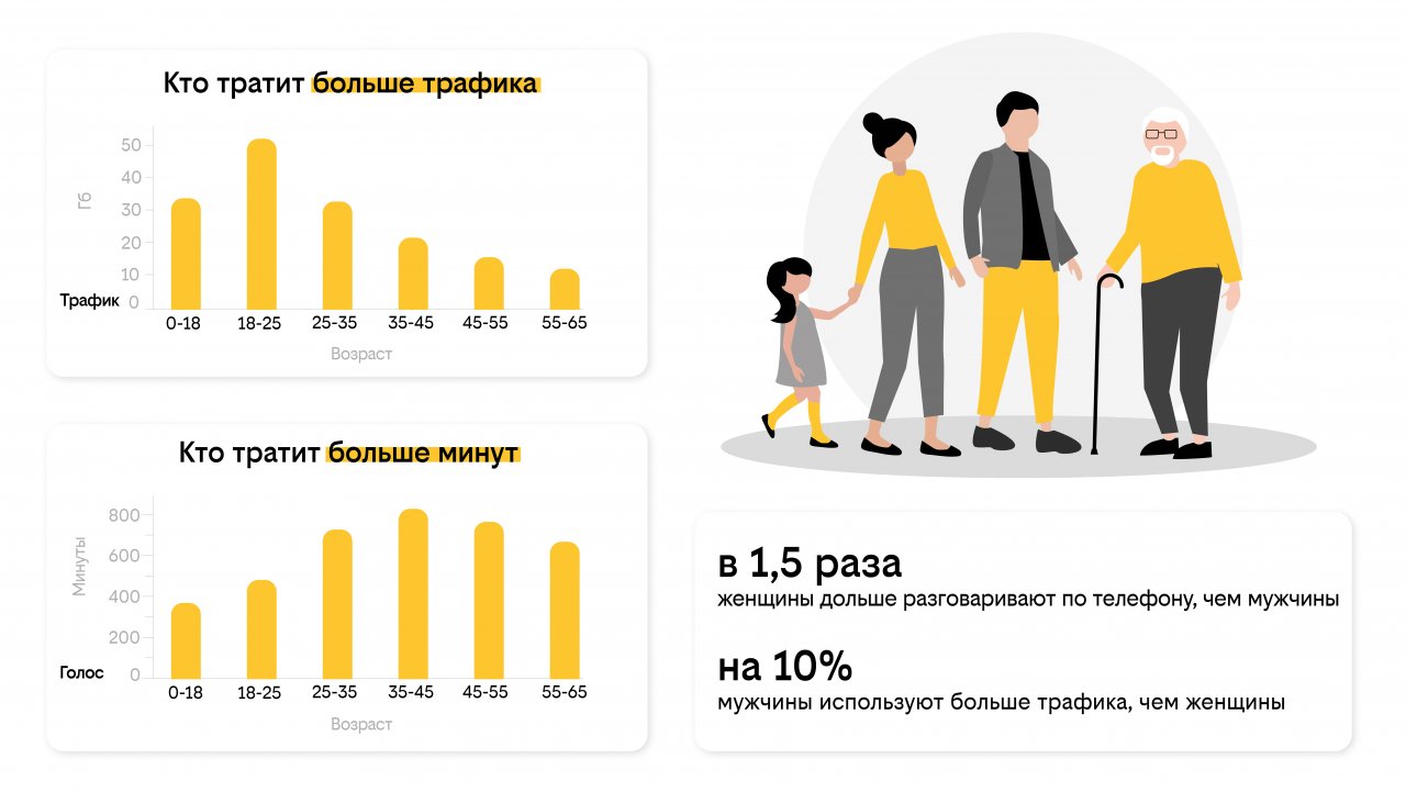 Интересно, что в среднем женщины пользуются голосовой связью в 1,5 раза больше, чем мужчины.