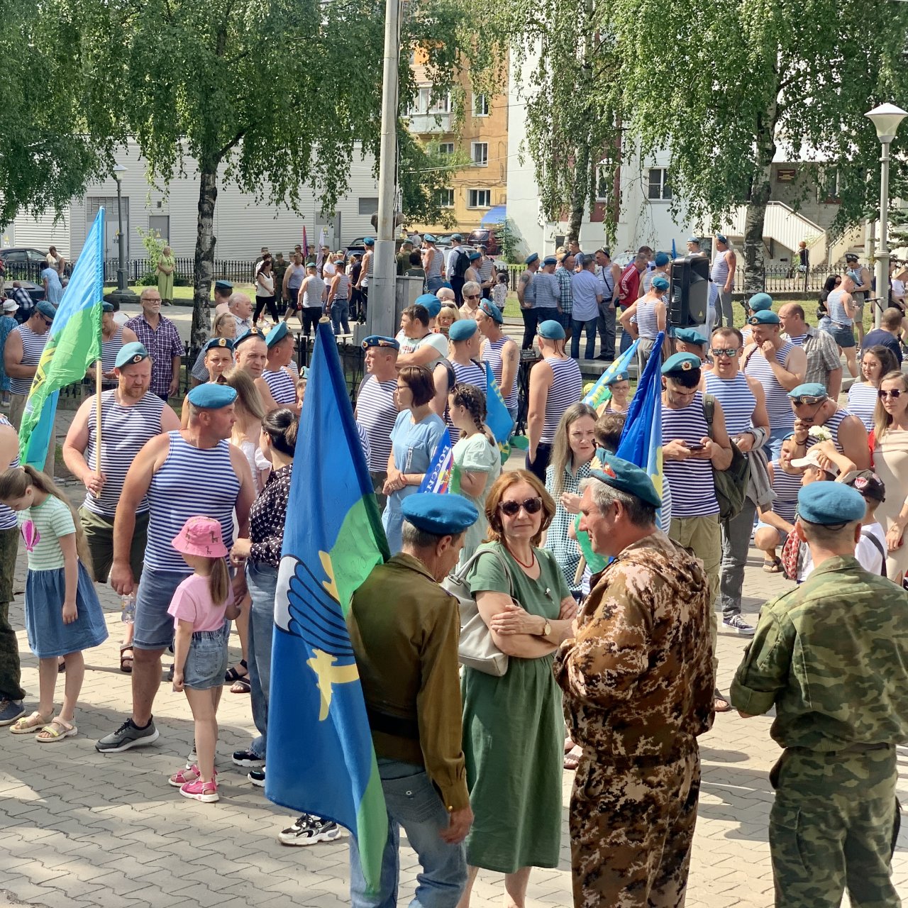 Синева беретов и тельняшек кировчан, флаги и красные гвоздики создали соответствующую атмосферу военного праздника.