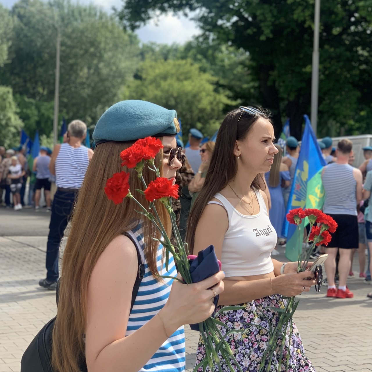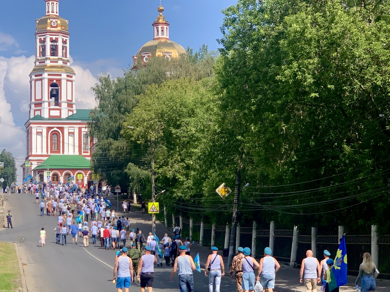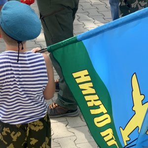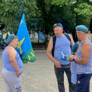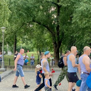 В половину одиннадцатого стройная колонна по восемь человек выдвинулась к набережной Грина. Крики "За ВДВ!" были уловимы даже вдали от их движения.