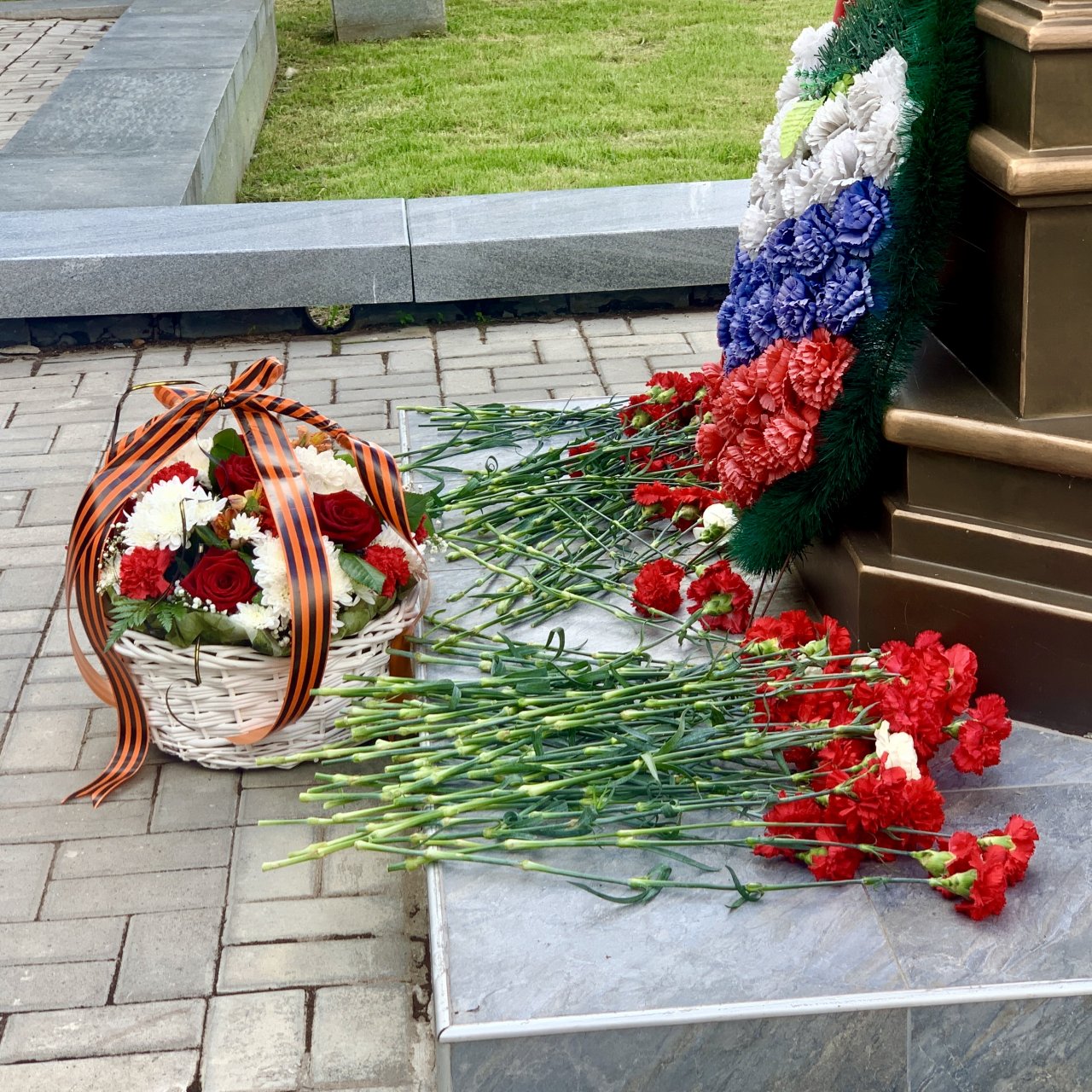 Десантники собрались вместе для возложения цветов к памятнику. Состоялась минута молчания.