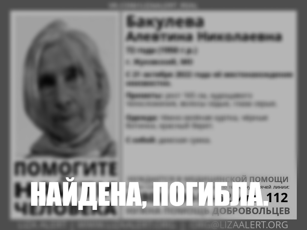 Найдена. Погибла. Глубокие соболезнования родным и близким, – написали представители поискового отряда "ЛизаАлерт" 11 ноября в группе ВКонтакте.