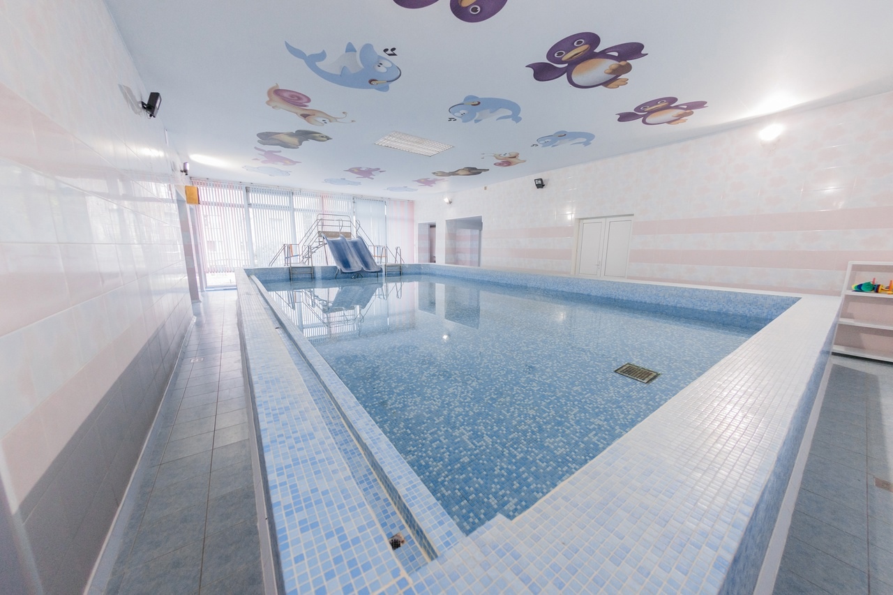 Детский бассейн для детей грудного и младшего школьного возраста с водными аттракционами-горками (температура воды 30-31ºС).