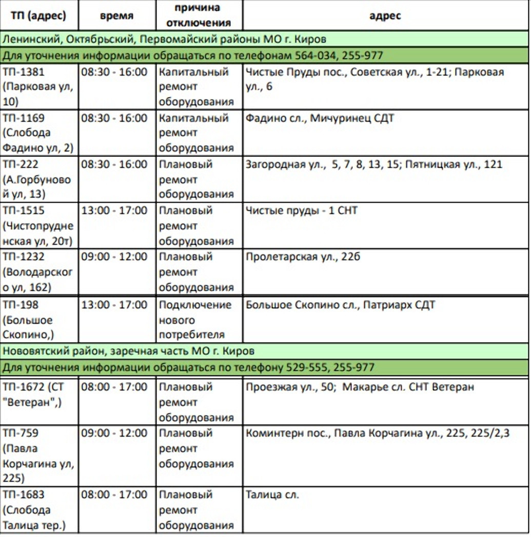 "Горэлектросеть" сообщает о графике отключения электричества в областном центре.