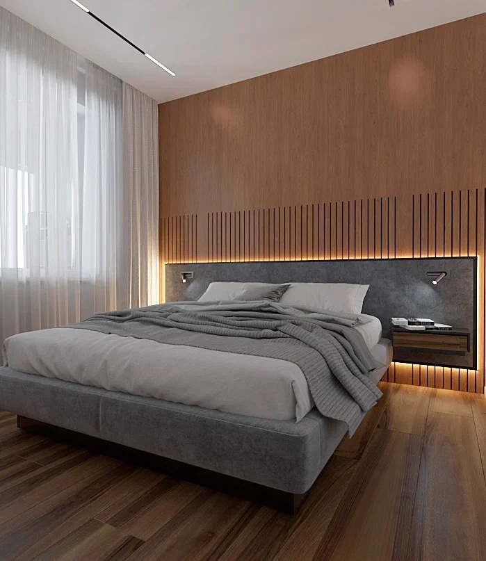 В спальне визуальный шум сведен до минимума, чтобы домочадцы смогли восстановиться после тяжелого трудового дня.