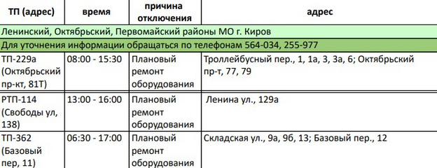 Опубликован список домов в Кирове, где не будет электричества 7 апреля