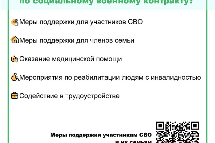 Социальный военный контракт заключается в целях комплексной систематизации мер социальной поддержки, – пояснила Ольга Шулятьева, министр социального развития Кировской области. – Благодаря ему можно получить полноценную помощь в решении индивидуальных вопросов каждой семьи участника СВО.