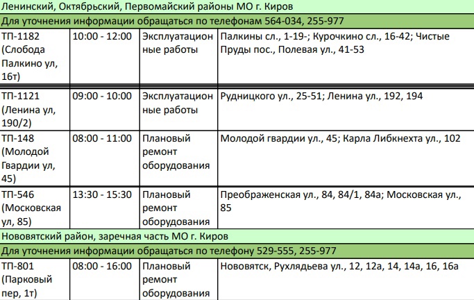 Сотни кировчан останутся без света во вторник