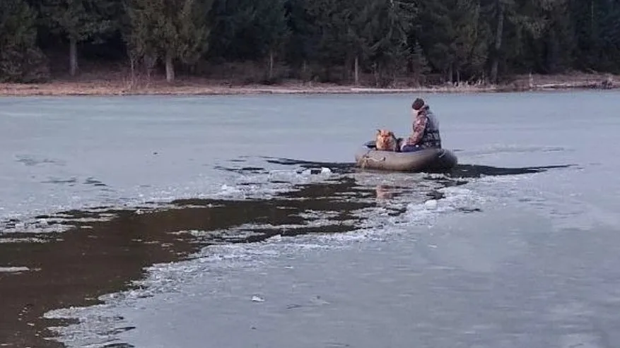 Это было в субботу, 22 апреля. Нашлись неравнодушные люди, которые отважились помочь напуганной собаке - развернулась целая спасательная операция. На призыв о помощи откликнулись работники пожарной части. На резиновой лодке они подплыли к собаке и забрали ее на берег.