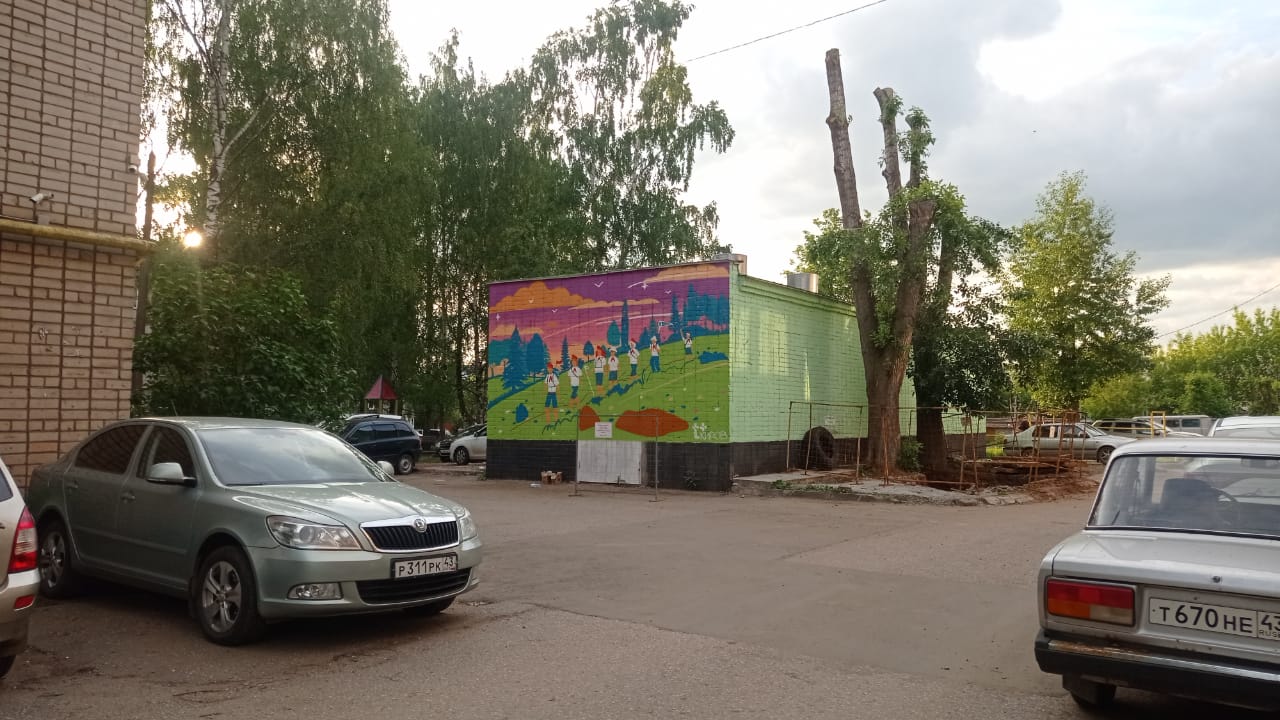 "Т Плюс" подарил на день рождения городу Кирову новый арт-объект. Еще совсем недавно центральный тепловой пункт на ул. Некрасова, 65 был серой и неприметной постройкой, а теперь стена с изображением отряда пионеров радует жителей микрорайона. Над созданием граффити работали уличные художники Роман Пуртов и Никита Наймушин.