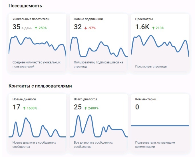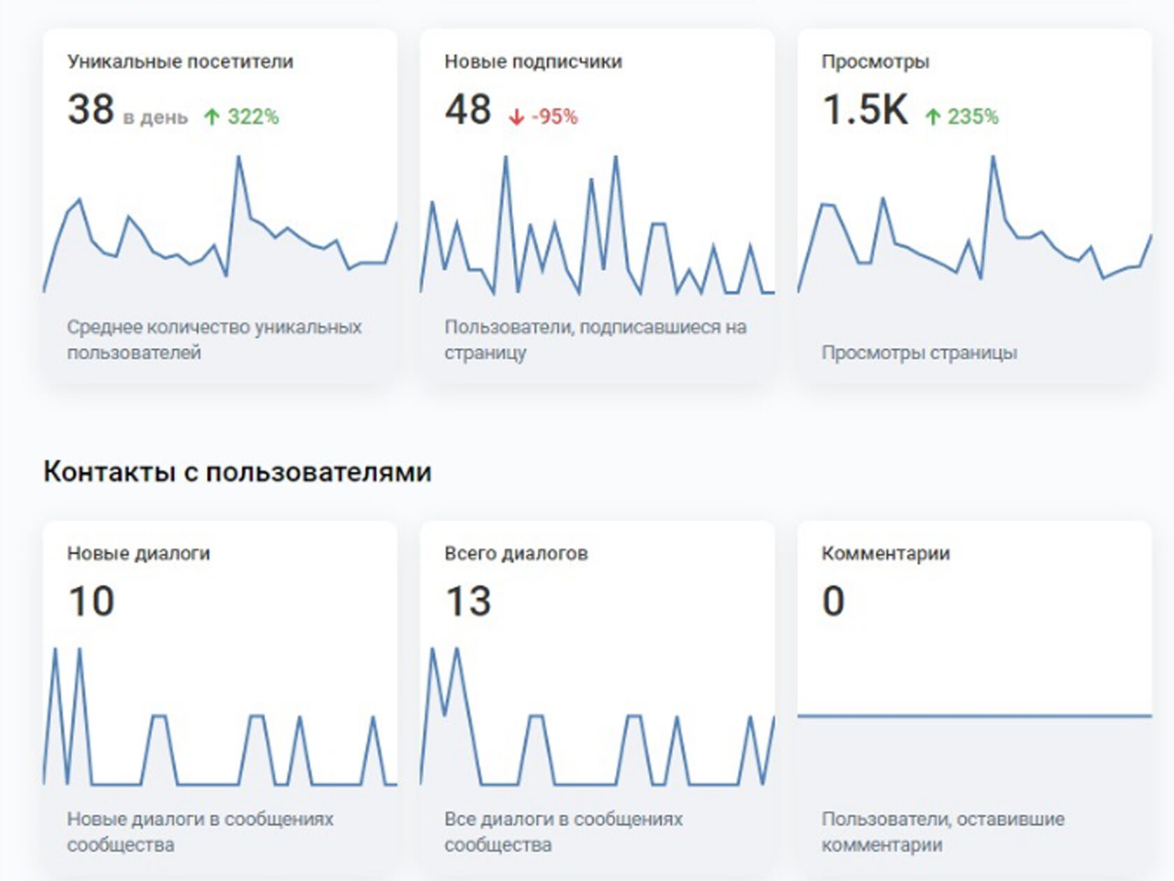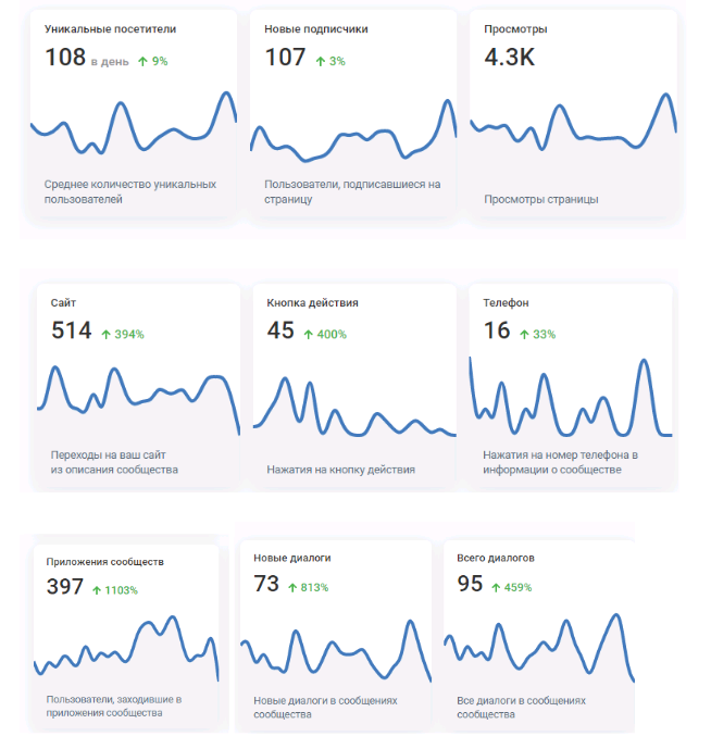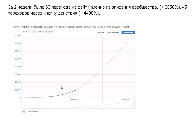 • Освоено бюджета - 9 929 руб. • Показы - 61 788 • Клики/Переходы - 907 • Уникальные посетители в день - 38 (+ 332%) • Новые подписчики - 48 • Новые диалоги - 10 (помимо звонков) • Средняя цена клика - 10 руб. • За 2 недели с момента запуска таргетированной рекламы принят на работу первый сотрудник